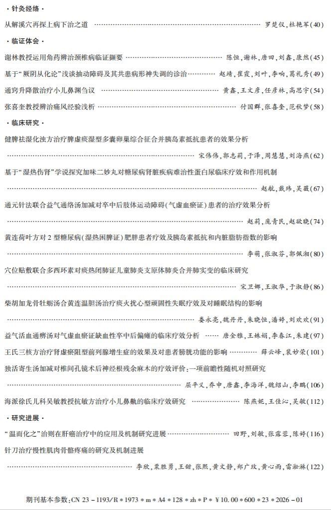 《中医药学报》2026年1期目录与您分享